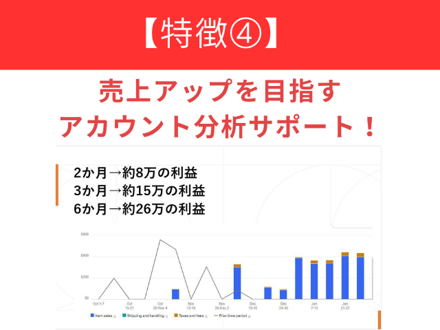 アカウントを分析して売上アップを目指すサポートつき!